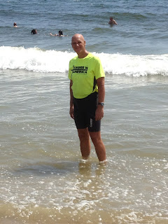 Back on Tuesday, June 12, 2012, Russ dipped his rear tire in the Pacific Ocean.  Today, August 4, 2012, he dips his front tire in the Atlantic Ocean!  Don't you LOVE that smile?  Praise the LORD! We made it SAFELY!